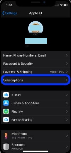 Step-3: Next, tap on Subscriptions.