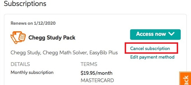 - Go to Chegg subscription, and then tap on ‘Cancel Subscription.’