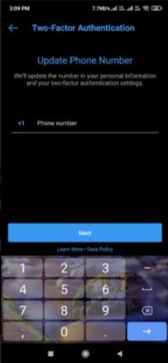 Step-8: Enter a new number that you want to add to your IG account in the empty box. After checking it, tap on Next.