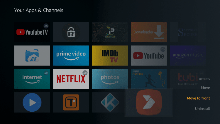 - Hover over Kodi and press the Options button on your remote. Select Move to Front.