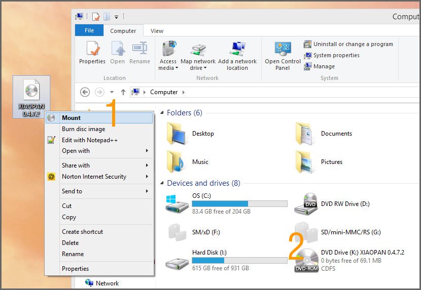 That’s it. This will mount the file on your PC and you can access the contents with ease.