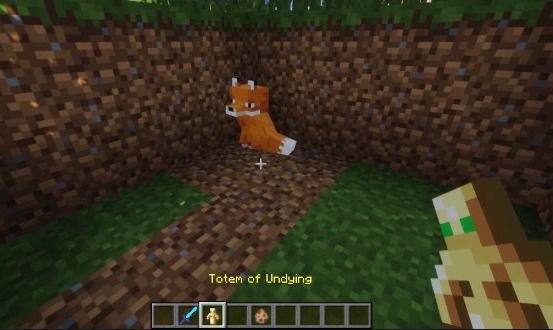 - When a fox is killed while holding a totem of undying, then the fox consumes the totem and revives itself.