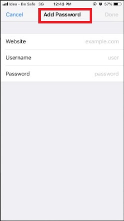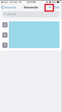 - After successful authentication, find and tap on Add Password option present in the top right corner. It will appear like a (+) sign.