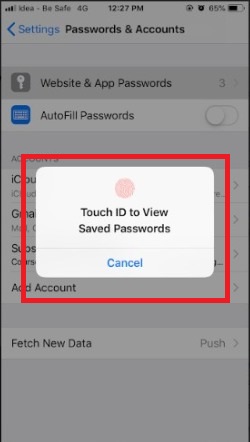 - The device will prompt you for authentication now. You can authenticate using either your Touch ID or Face ID.
