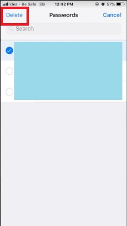- Or, tap on Delete present in the upper left corner to remove the password.