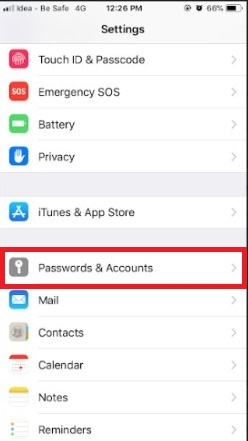 - Now scroll down a bit, find and tap on ‘Passwords & Accounts.’
