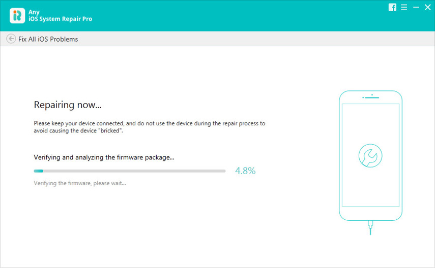 Step 3. With the firmware package that is already downloaded, ReiBoot will repair the iOS on your iPhone and solve the wifi problem.