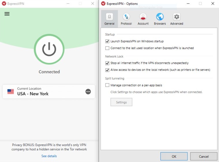 Sometimes because of server error, the real location or IP address of the user gets public. To ensure your data from getting leaked, ExpressVPN provides a network lock feature called Kill Switch. Kill Switch blocks all the external IP striking your connection and saves you from getting caught.