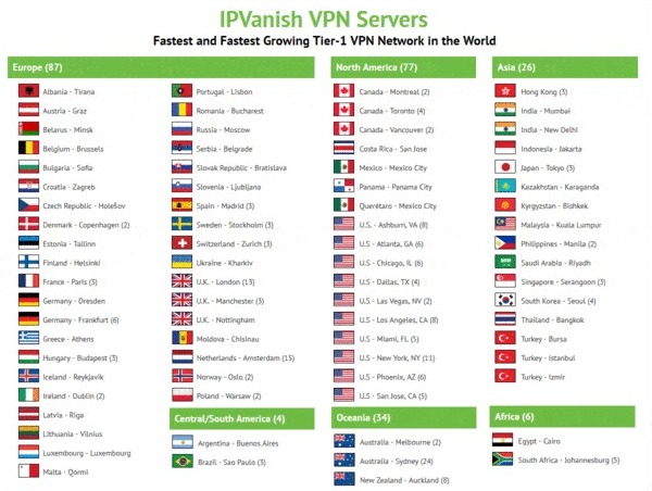 Being a premium virtual private network, IPVanish provides users with a wide range of strong servers. It features 1300+ secure servers situated in more than 70+ countries. You can look at the whole list by visiting this webpage.
