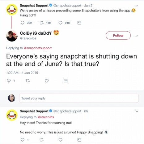 They were pranking people and people on the internet really believe whatever they read. So, the news went viral and it made heavy rounds on Twitter. Then, the Snapchat Support account on Twitter that the news is fake and Snapchat is not going to shut down.