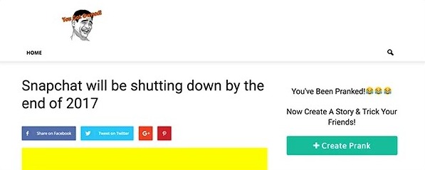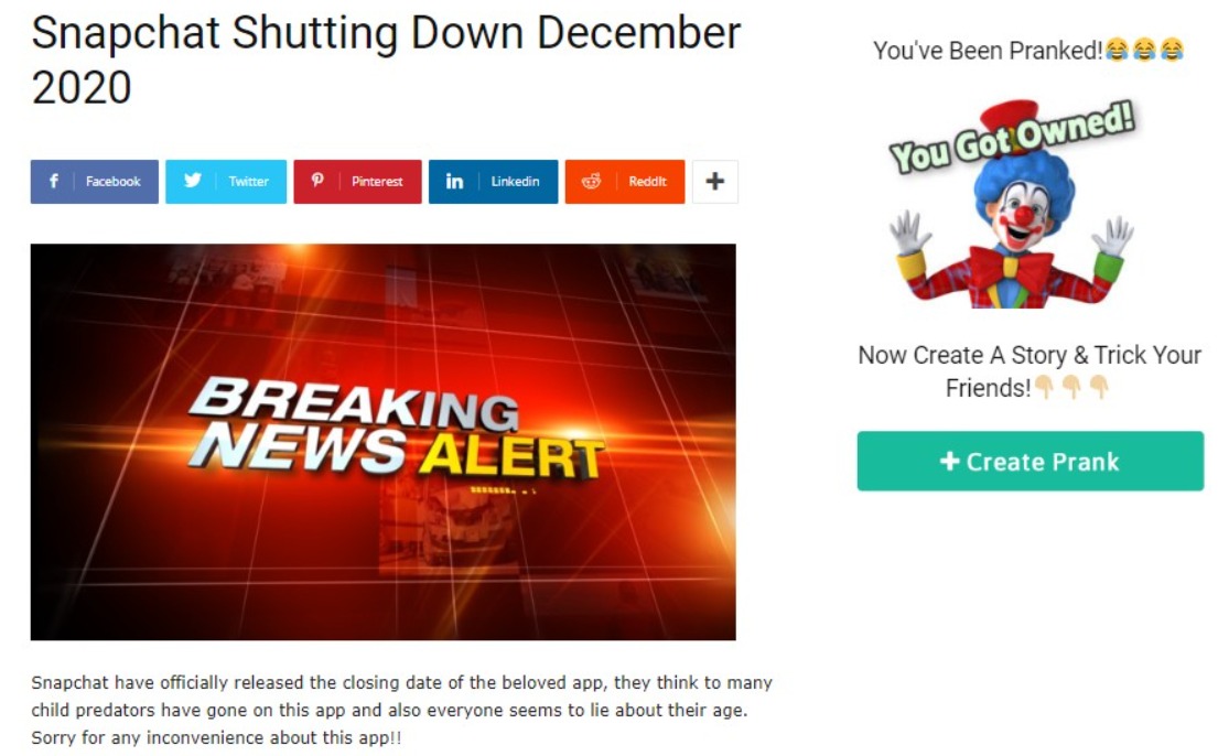 The Snapchat shutting down rumors are again coming from Channel45News.com. They have put up a post on their website claiming that Snapchat will shut down in December 2020 due to abnormal reasons. However, there is clearly written right next to the post that ‘You’ve Been Pranked,’ but still some people are innocent enough to actually believe them.