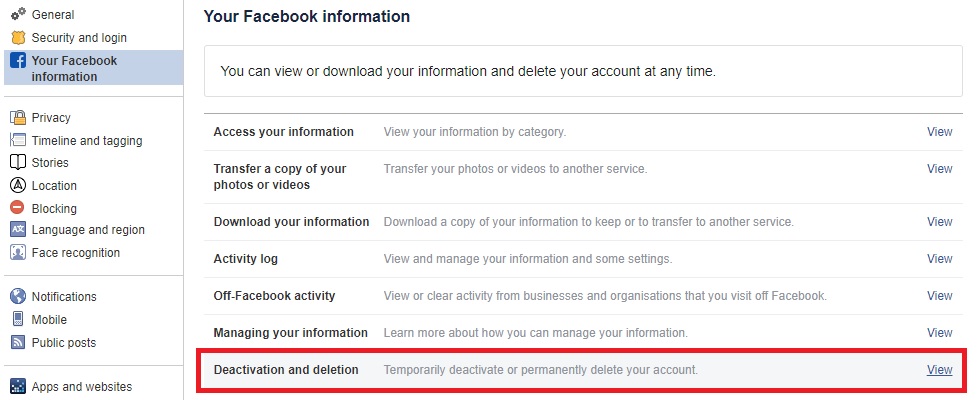 - Select Deactivate Account and then click on Continue to Account Deactivation.