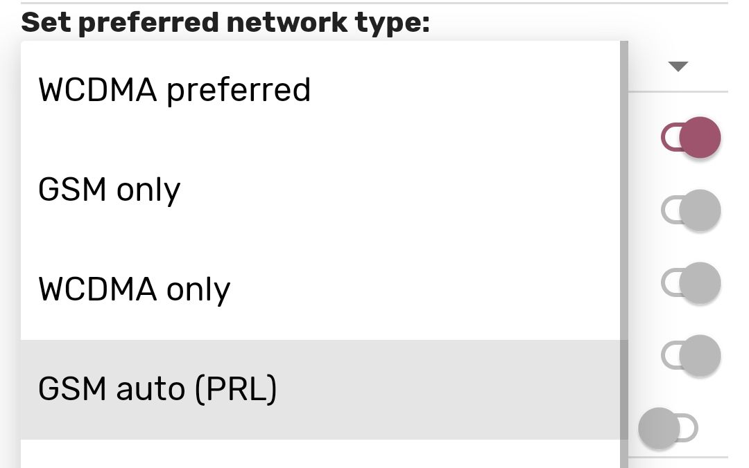 - Select GSM auto (PRL) from the Set preferred network type drop-down menu.
