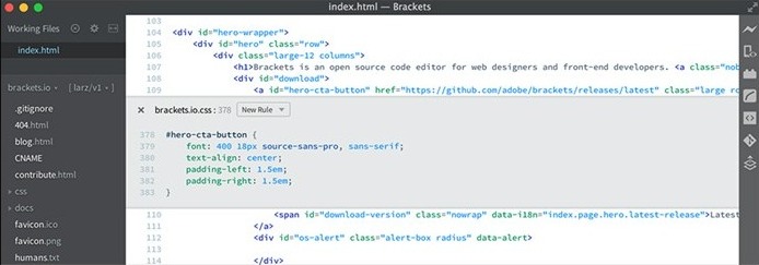 Brackets is a free and open-source code editor by Adobe. It is a great Notepad++ alternative on Mac as it is full of features. And, it is updated with new features every month. It also has an ‘Extract’ feature that will help you to extract colors, gradients, fonts, and more from a PSD file. Then, you can turn it into CSS styles. If you are into coding, you’d definitely find it useful.