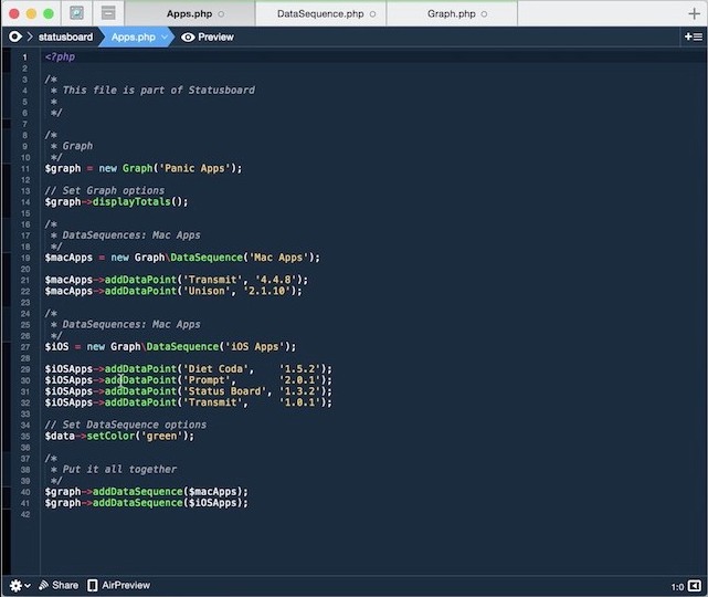 Coda 2 is a powerful text editor developed specifically for web developers and professional coders. It has all the essential features that you’d need along with a long list of advanced features. It supports syntax highlighting and syntax folding for a wide range of languages. To use it, you’d have to spend $99.