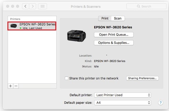 Step-3: Next, click on the name of the printer you are using. Make sure you select the right printer at this step.
