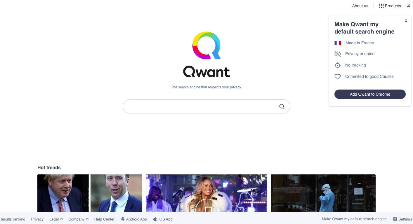 In 2011 Qwant got started just to keep your browsing data secure. It is supported by bing to provide search results. Qwant shows few ads which are based on Microsoft only. It also offers children mode where you will get family-friendly content.