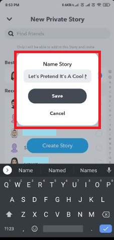 Step-4: After that, you will be prompted to set a name for your private story. Here, enter a name for your private story, and tap on Save.