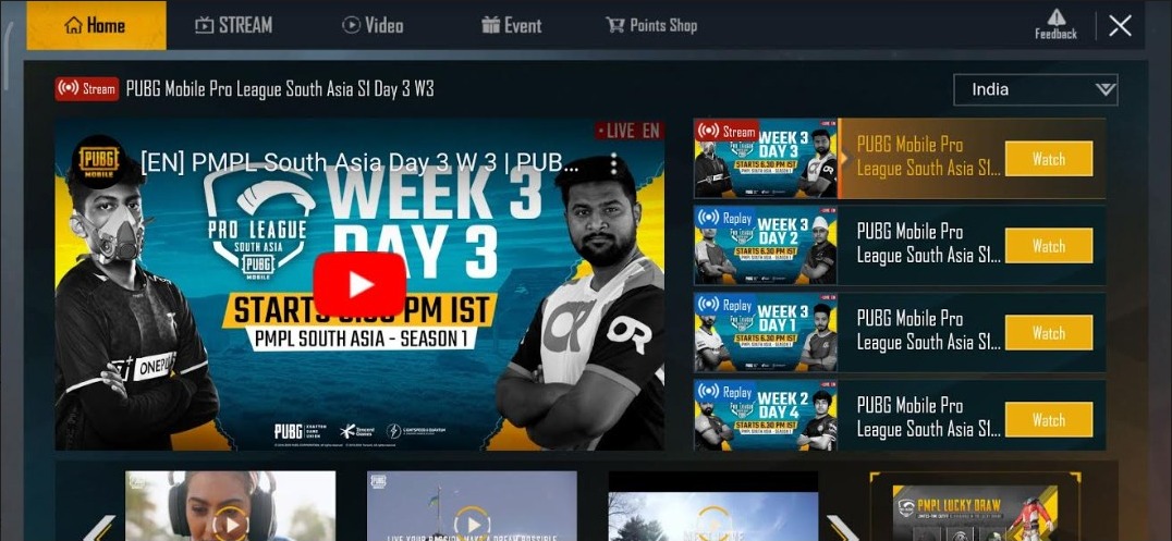 8. Watch PUBG Mobile eSports (PMCO, PMPL, PMIS, etc)