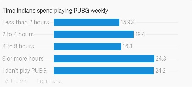 - If we combine PUBG Mobile and Game for Peace (Chinese PUBG Mobile), then China is the country with the maximum percentage of players (24%), followed by India (19%), and the USA (12%).