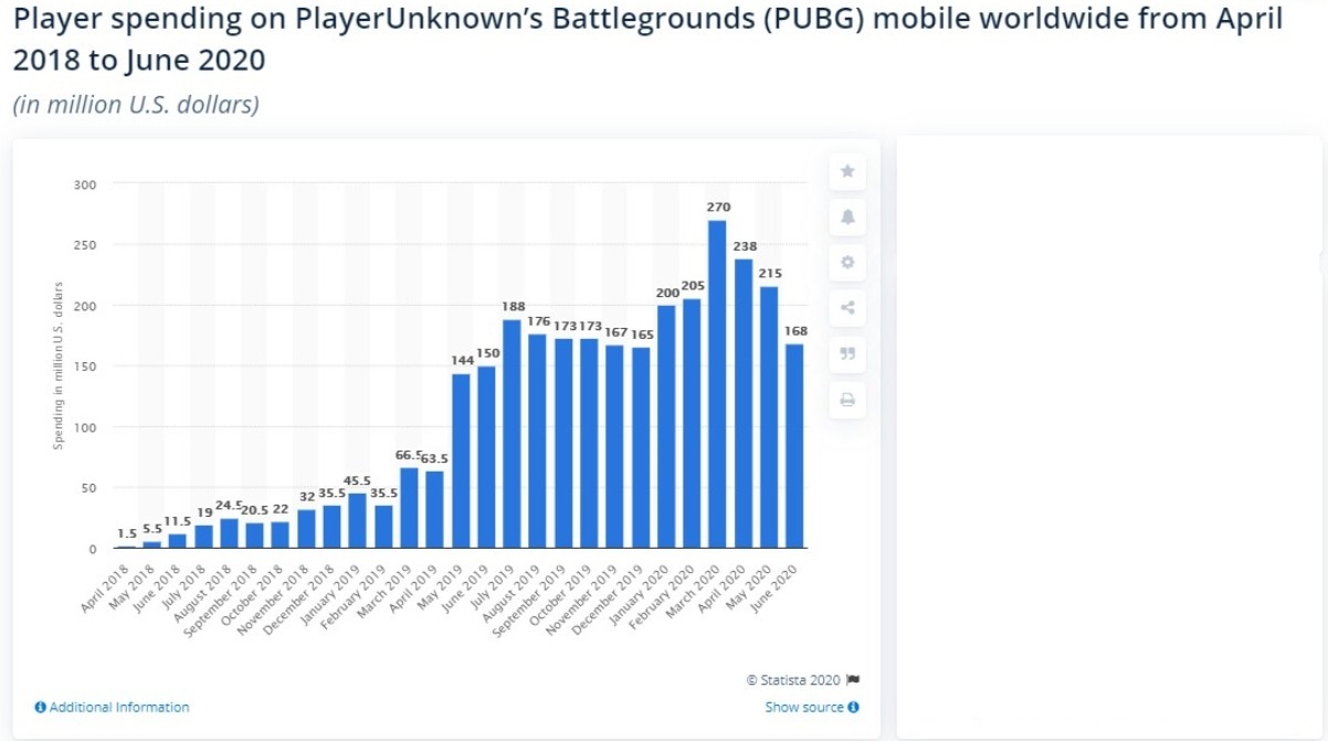- As of Q1 2020, the lifetime revenue for PUBG Mobile has surpassed $3 billion.