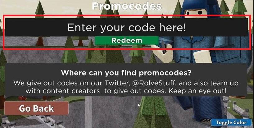 Step-4: Click on the section that says ‘Enter your code here!‘ and paste any of the active codes mentioned above.