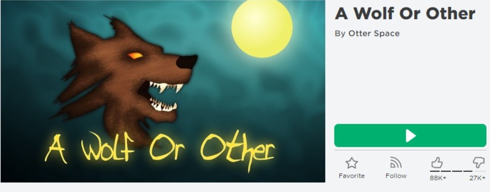 A Wolf or Other is a popular Roblox game by Otter Space. It is a classic Murder Mystery with essential twists and turns. The players are randomly chosen as innocent, hunter, or werewolf. The innocents have to try to stay alive, the hunters have to hunt down the werewolf, and the werewolf has to kill everyone.