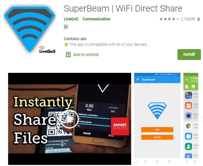 Superbeam is a well-known file sharing app that comes in a free and a paid version. It is one of the oldest names in its category. It is available for Android, iOS, Windows, and Mac devices. The transfer speed that it provides is fast enough. You can use it to transfer any type of file of any size.