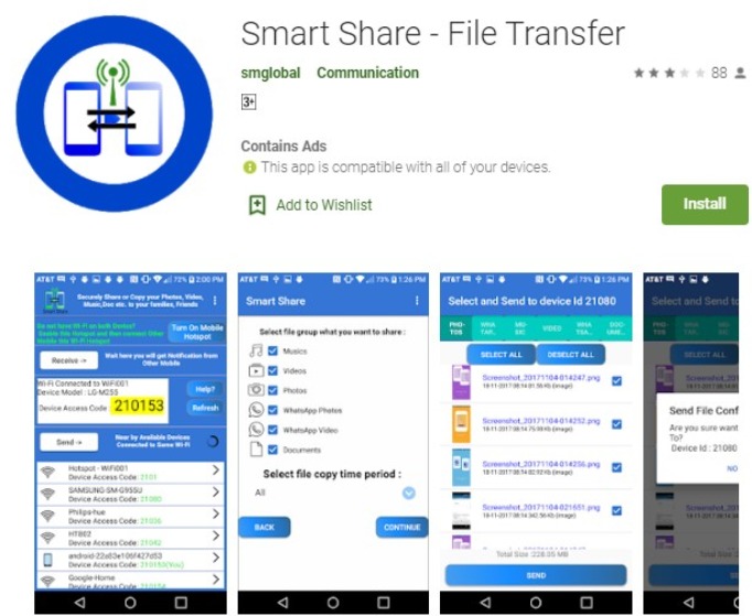 Smart Share is one more Indian file sharing app available in the Play Store. This app works in a very similar manner to SHAREit. You will find all the essential features to move any file across devices. It even works for cross-platform sharing. The transfer speed that it offers is impressive.