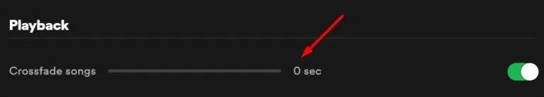 - Turn off the toggle present next to the Crossfade songs option.
