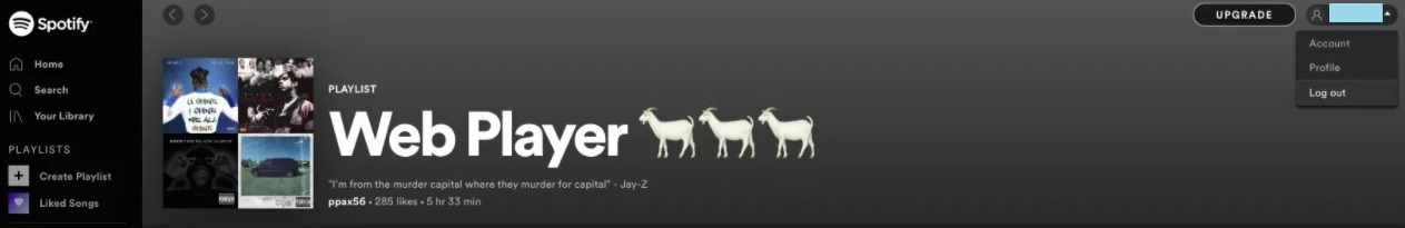 For Spotify web app: Choose your profile, choose Log out, and then log in again.