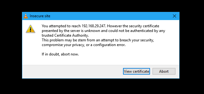 - A warning window will appear on your screen as you are playing to a network device. There’s nothing to worry about here. Just click on View certificate.