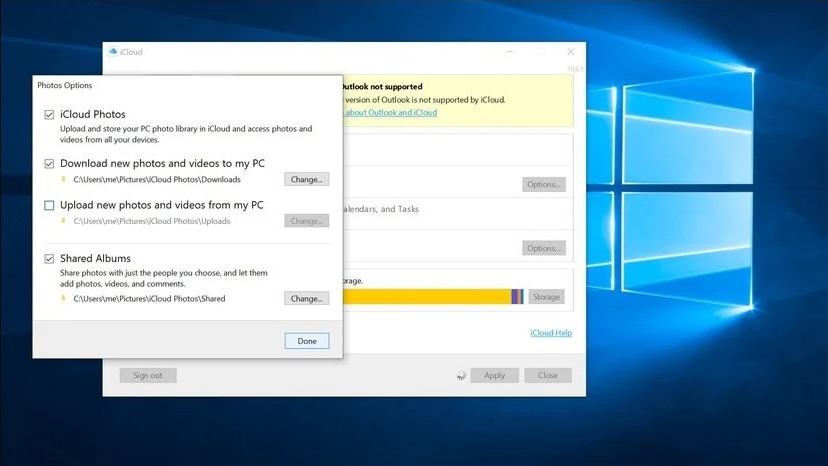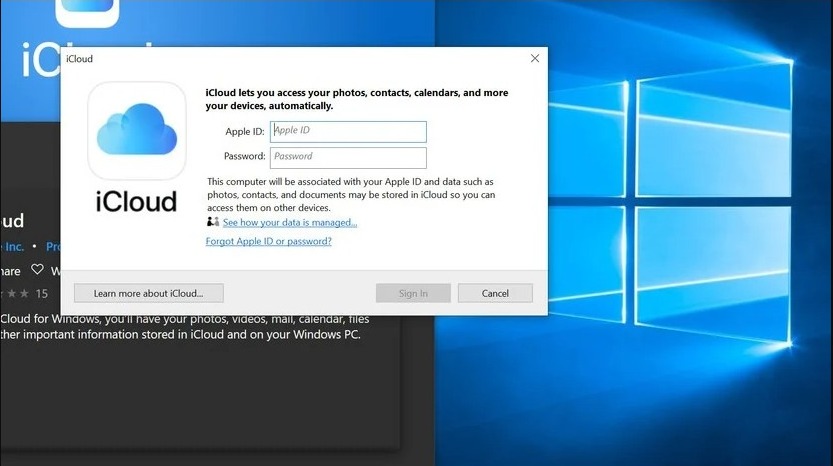 Note: If you are using a Windows version older than Windows 10, then you can get iCloud from Apple to proceed with the steps below.