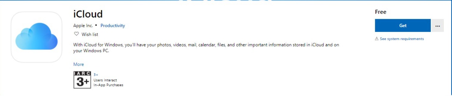 Step-1: Go to the Microsoft Store from the Start menu on your PC. Find iCloud on the store and click on Get to download it on your PC. Once installed, click on Launch to run it.