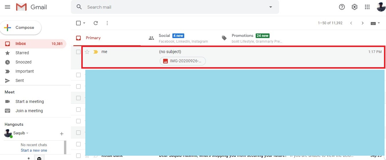 Step-2: Open a browser on your computer, and open your Gmail inbox. Open the email you have received from yourself, and download the pictures present in it.