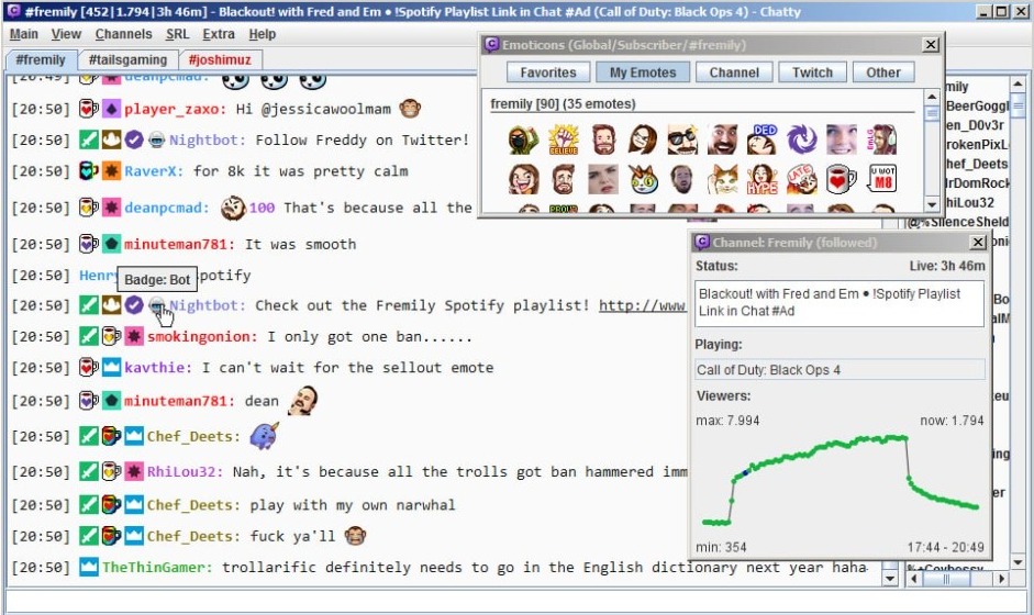 A lot of Twitch streamers rely on third-party programs to track their chat. Chatty is a top-rated chat software that offers a long list of features to help streamers and moderators track the chat of their channel. The interface of this tool is simple and provides a learning curve.