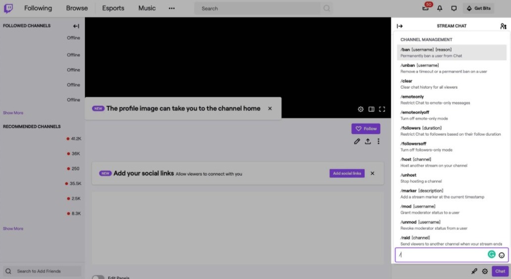 - Allow you to check inappropriate comments & ban the user– You can go through the chat to find and remove any inappropriate comments that may violate Twitch’s Terms of Services to protect your channel.