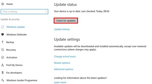 If updating or reinstalling drivers didn’t help, you should check if there are any ‘Windows Updates’ available. If there are, you have to install them. Follow these steps: