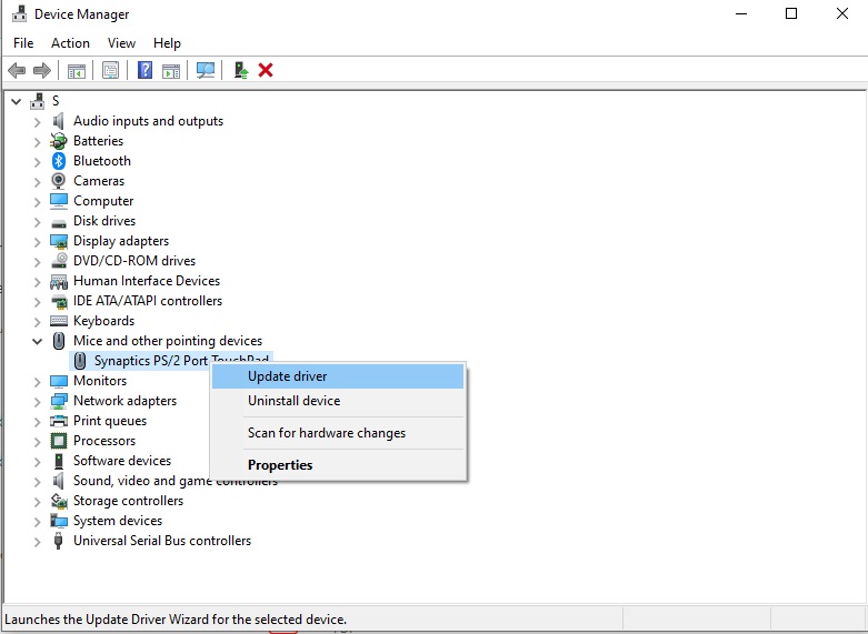 Step-2: In the Device Manager, expand the ‘Mice and other pointing devices’ category. Next, right-click on ‘Touchpad’ and then click on ‘Update driver.’