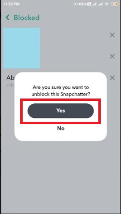 - Step-5: You will see a confirmation prompt on the screen saying “Are you sure you want to unblock this Snapchatter?” Tap on Yes to proceed. That person will be unblocked then.