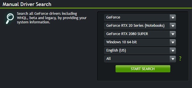 Step-2: Now go to the Manual Driver Search section. Put in your system information here using the drop-down menu.
