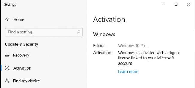 Step-4: Once Windows 10 is installed, go to Settings, click on ‘Update & Security‘, and then click on ‘Activation screen. You will find ‘Activated with a Digital License‘ written there.
