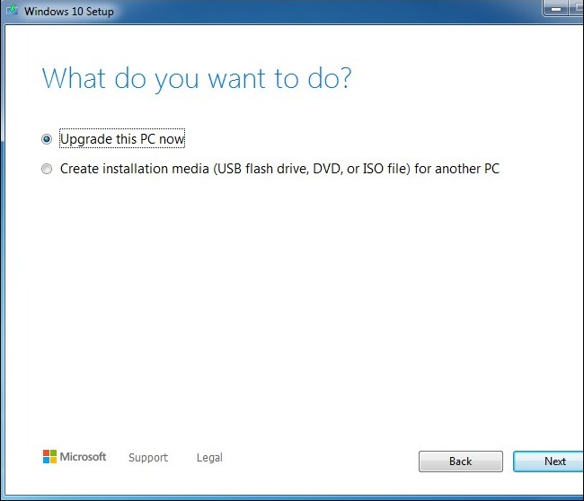 Step-2: Run the downloaded .exe file and go through the initial instructions. Choose ‘Upgrade this PC now’ button when it prompts.