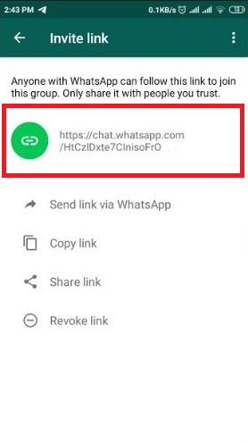 Note: The user with whom you share this created link can share it with anyone they wish. So, only share the link with your trusted contacts if you don’t want unwanted people joining your group. Or, if you have made the mistake, you can always Revoke link and create a new one.