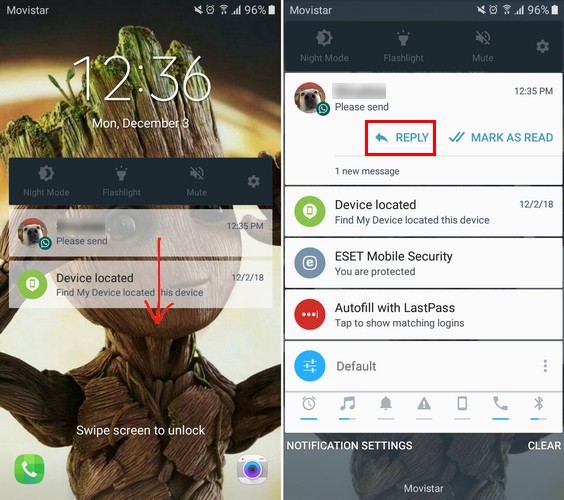 If you don’t want to show your status online and not change your current ‘Last seen‘ time, this trick will help you. Whenever someone messages you on WhatsApp and you are connected to the internet, you will receive a notification. You just have to tap on ‘Reply’ written below the notification, and reply to the sender from here.