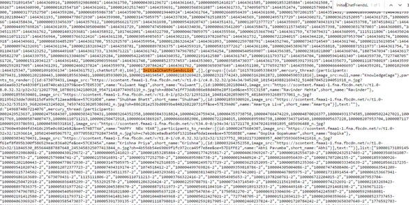 - Once the Page source loads, press CTRL+F keys to trigger the Find feature and type InitialChatFriendsList.