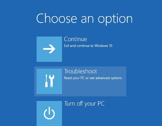 Step-3: Next, click on ‘Troubleshoot’ on the blue ‘Choose an option’ screen.