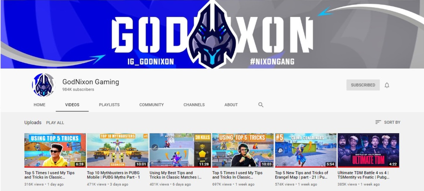 GodNixon is not a competitive PUBGM player, he is a content creator who regularly posts videos about PUBG Mobile tips and tricks. You can find various tips and tricks videos on his channel that can help you have an edge over the enemies. He also posts gameplay videos where he uses his tricks to kill the opponents. Watching these will help you astonish your enemies.