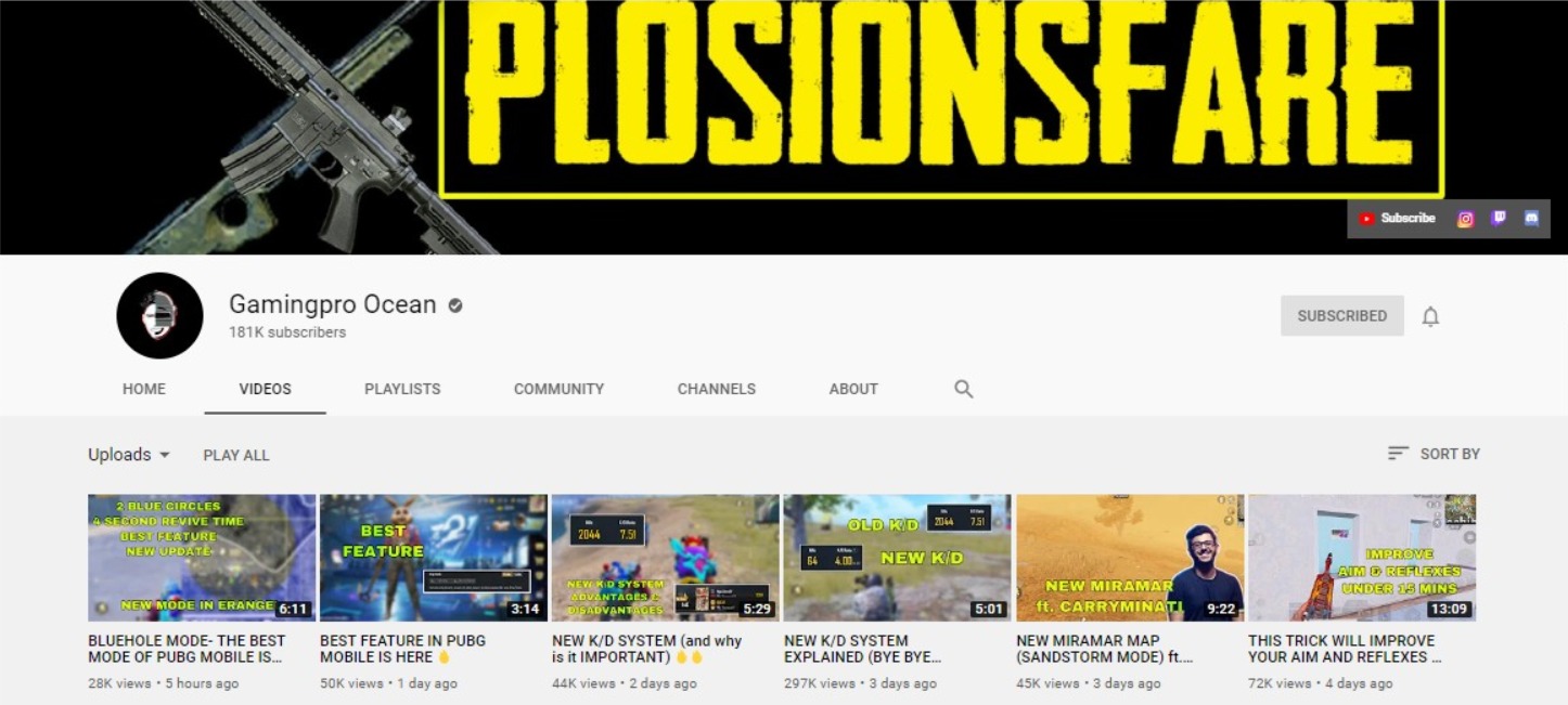 GamingProOcean is the Youtube channel of the popular Indian PUBG Mobile caster Ocean Sharma. On his Youtube channel, he regularly posts videos related to PUBG Mobile where he explains the game mechanics, features, and other things. Watching his videos, you can understand the game better and be a better player.