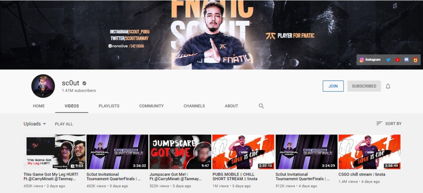 Scout is one of the best PUBG Mobile players in India. He currently plays for team Fnatic. Scout’s Youtube channel is one of the best sources to know how you should play the game. You can find various videos on the channel on topics like Assaulting, Sniping, and Spraying, and many more.
